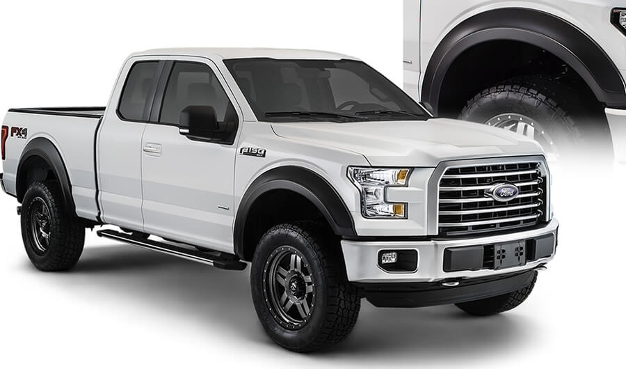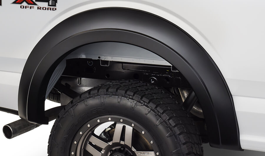 You’ve equipped your Ford F-150 with oversize wheels and tires for serious off-road traction and style. Now you need extra tire coverage to protect your rig’s body and maybe even comply with local laws. Bushwacker Extend-A-Fender® Flares deliver premium-grade protection and style matched to oversized tires. Yet, as tough as they are, they go on easily with no drilling required. You can install them in minutes and enjoy them for years – our exclusive Dura-Flex® 2000 material is designed for added durability and flexibility, with built-in UV protection.