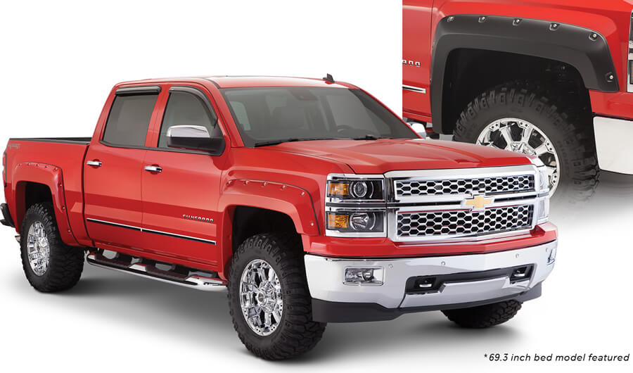 With their recessed stainless steel bolts and massive presence, Pocket Style® Fender Flares are a Bushwacker original and an off-road icon. They’re custom-designed for your Chevrolet Silverado to complement oversized tires and high-clearance lift kits. You can mount them right out of the box, with their tough, OEM-style matte black finish – they’re UV protected so they won’t chalk. Or, paint them to match or accent the body color, for a factory-custom look.