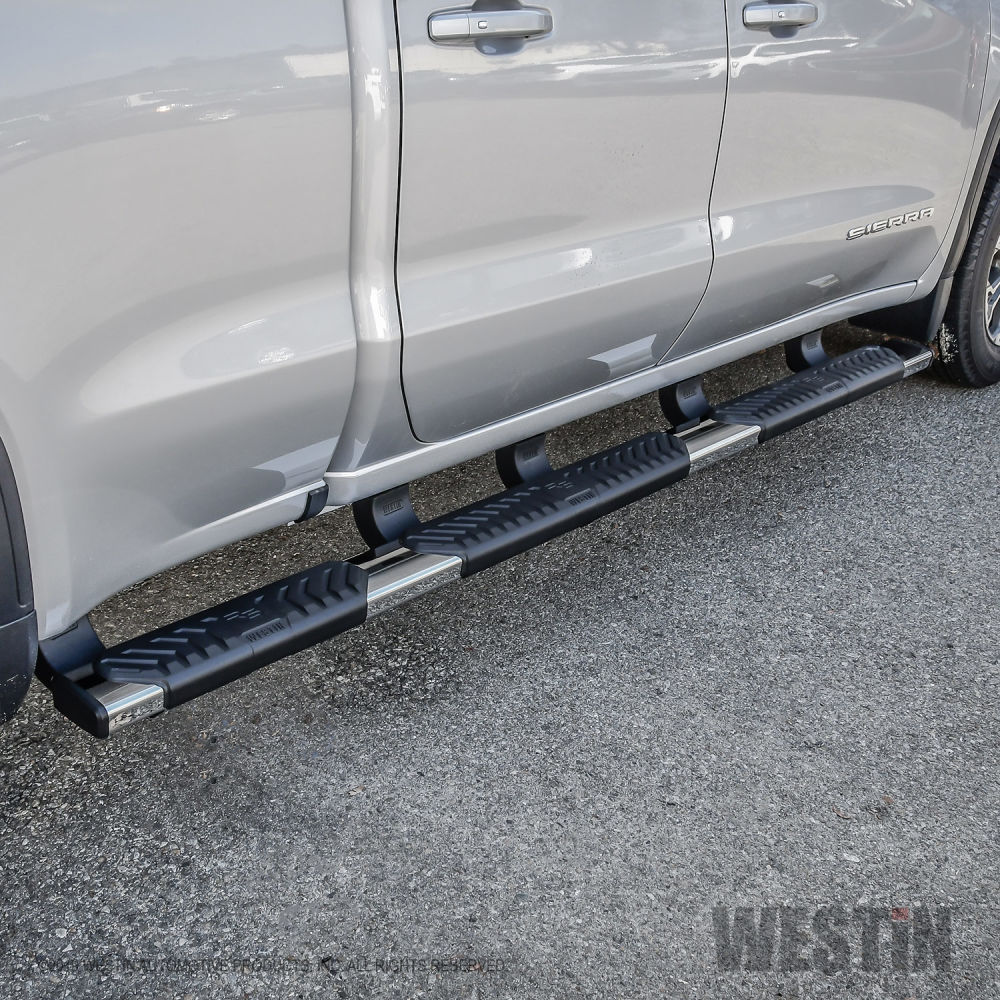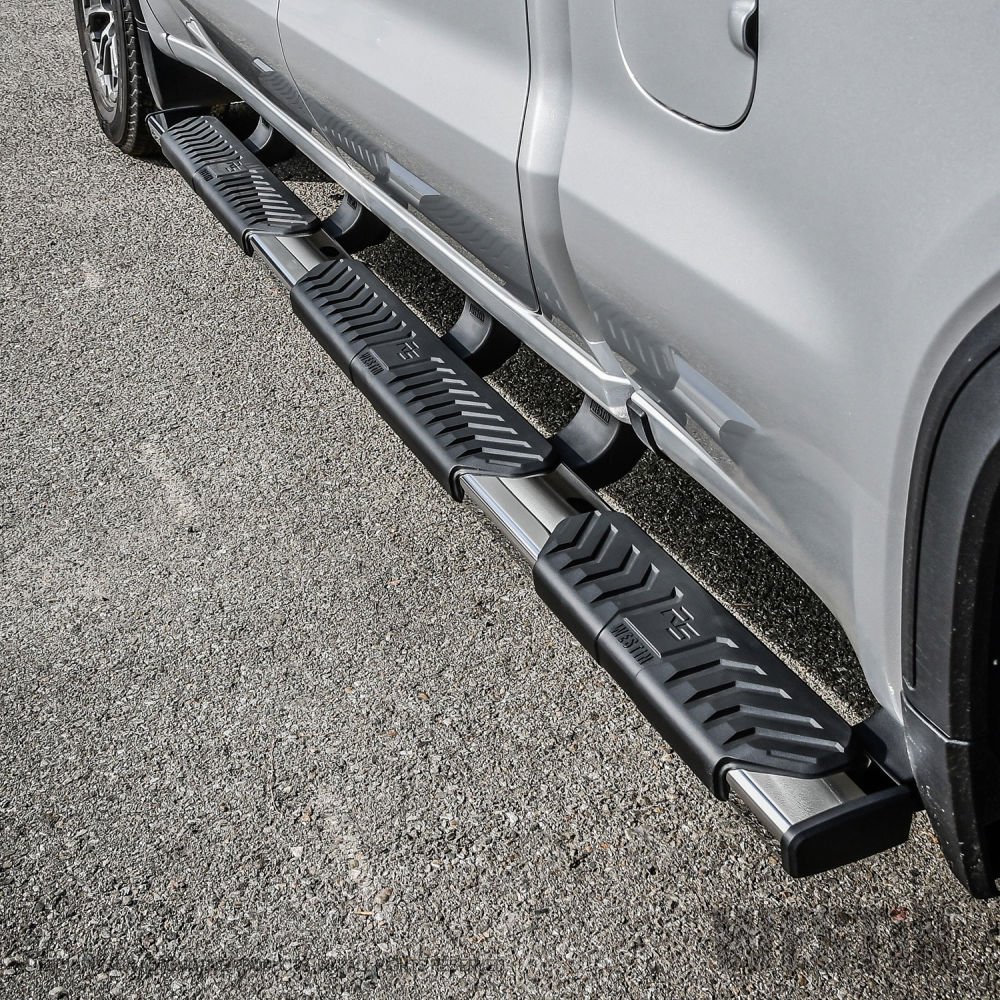 Get a boost, with Westin’s R5 M-Series Wheel-to-Wheel Nerf Step Bars. The extra wide 5” footprint step design provides easier and safer vehicle access for both drivers and passengers. Featuring three oversized skid resistant step pads, the R5 M-Series Wheel-to-Wheel allows easy access to the vehicle cab or truck bed cargo area.